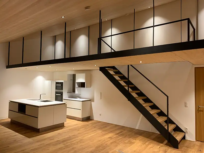Unser erfahrenes Team plant und baut für Sie Treppen aus eleganten Holz- und Stahlkonstruktionen.