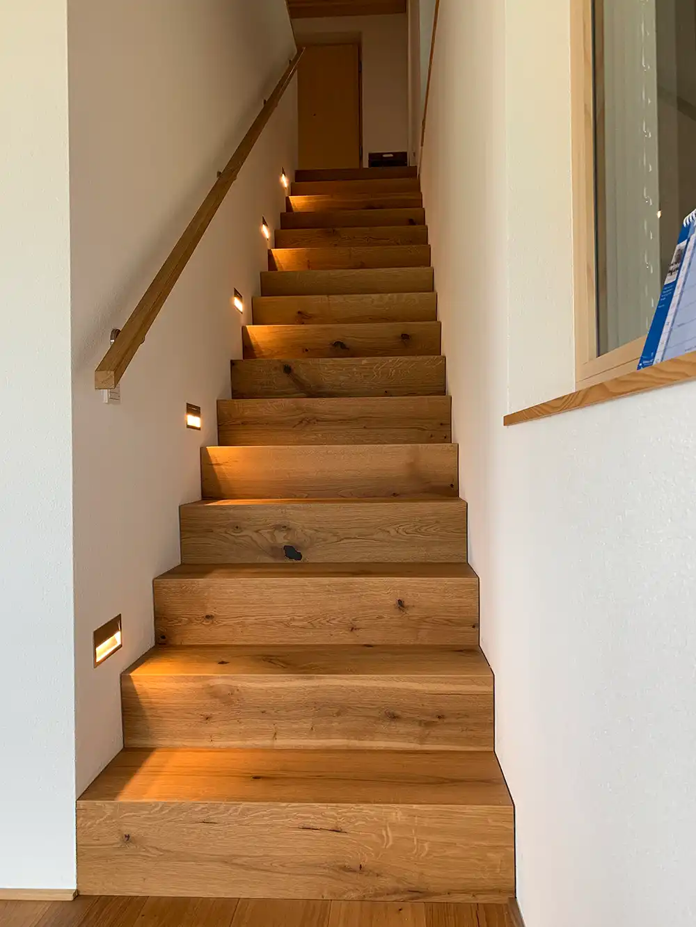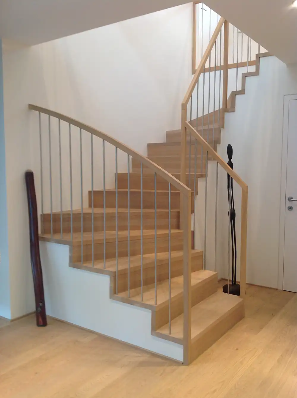 Der Beton sorgt für die Stabilität, das Holz bringt Wärme und Behaglichkeit. Wir verkleiden Betontreppen entweder vollständig oder teilweise ganz nach Ihren individuellen Wünschen. Für die Verkleidung setzen wir hochwertige Hölzer aus heimischen Wäldern ein.
